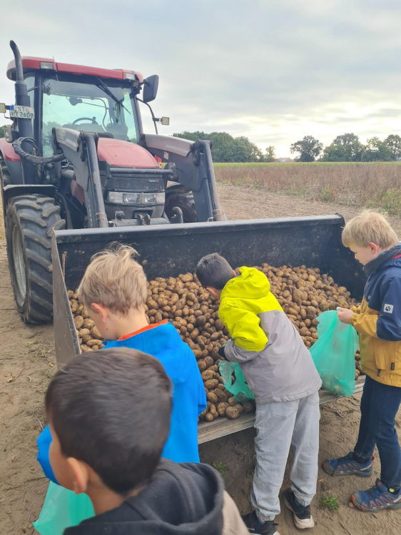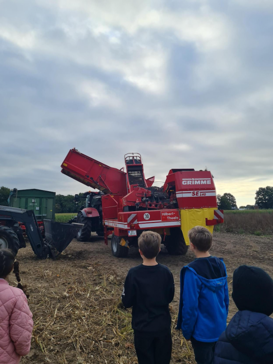 Der Grund: Die Kinder waren in der vergangenen Woche bei Herrn Hilbert zu Gast und durften mit dem Vollernter selbst Kartoffeln ernten!
